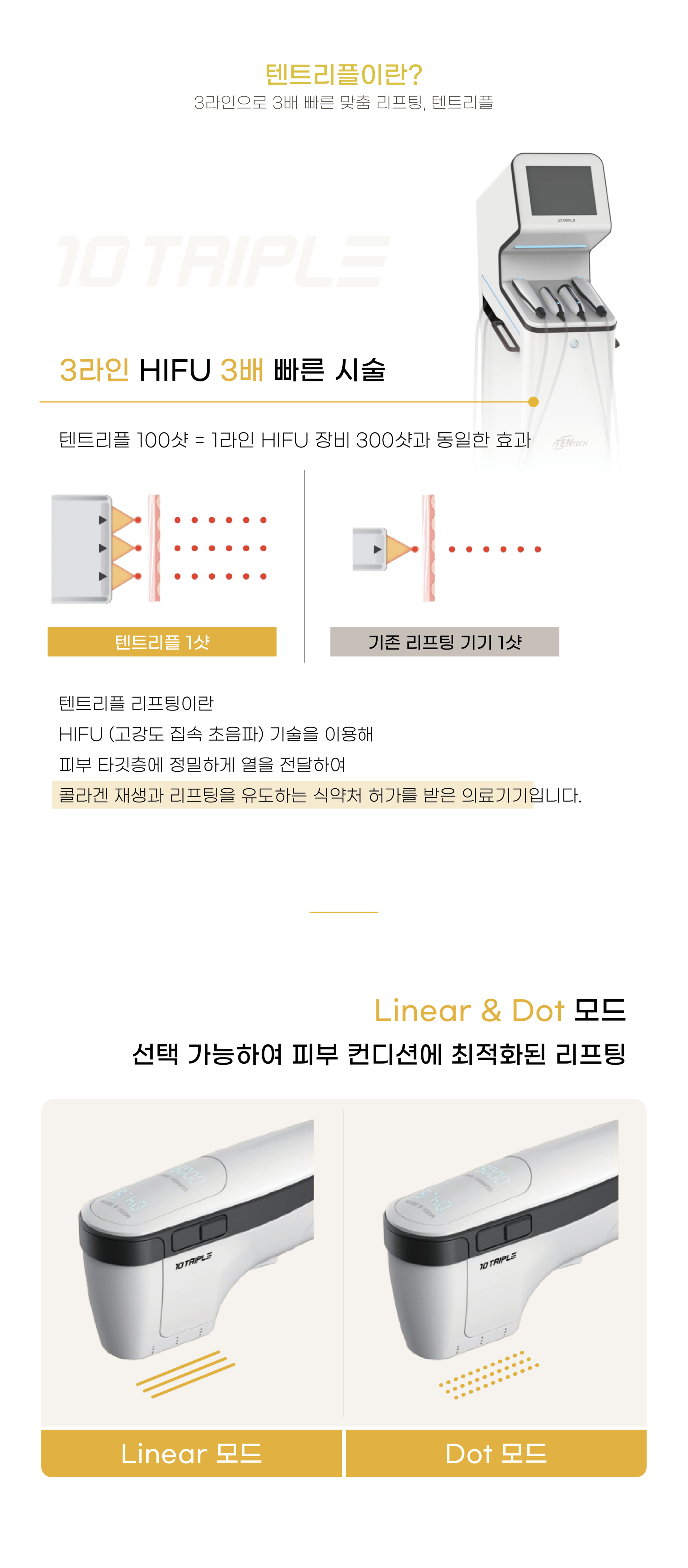 3라인으로 3배 빠른 맞춤 리프팅, 텐트리플