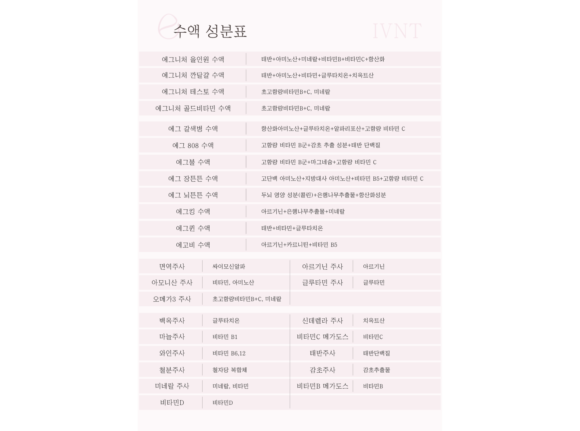 백옥주사 ₩ 40,000 마늘주사 ₩ 40,000